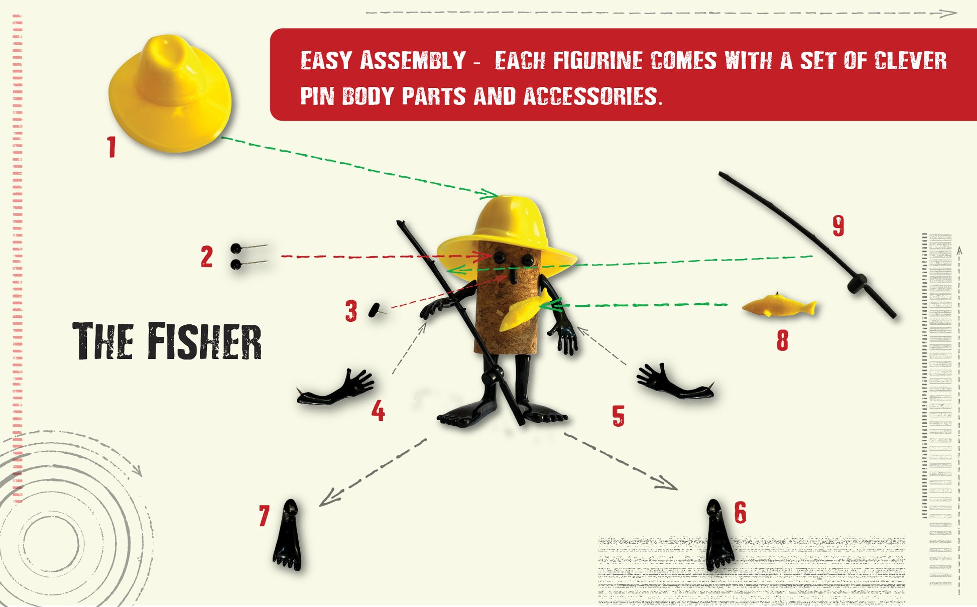 - Finely crafted pins: Each figurine comes with a set of clever pin body parts and accessories. So handle them with care! These miniature wonders are an amazing collection for kids and adults alike but they are not a toy. Most accessories are fitted by pins to the corks, but some are complementary (for example the surfboard of the Surfer figurine) and so they are to be positioned next to the figurines. Clay is supplied for positioning accessories according to your unique personal style.